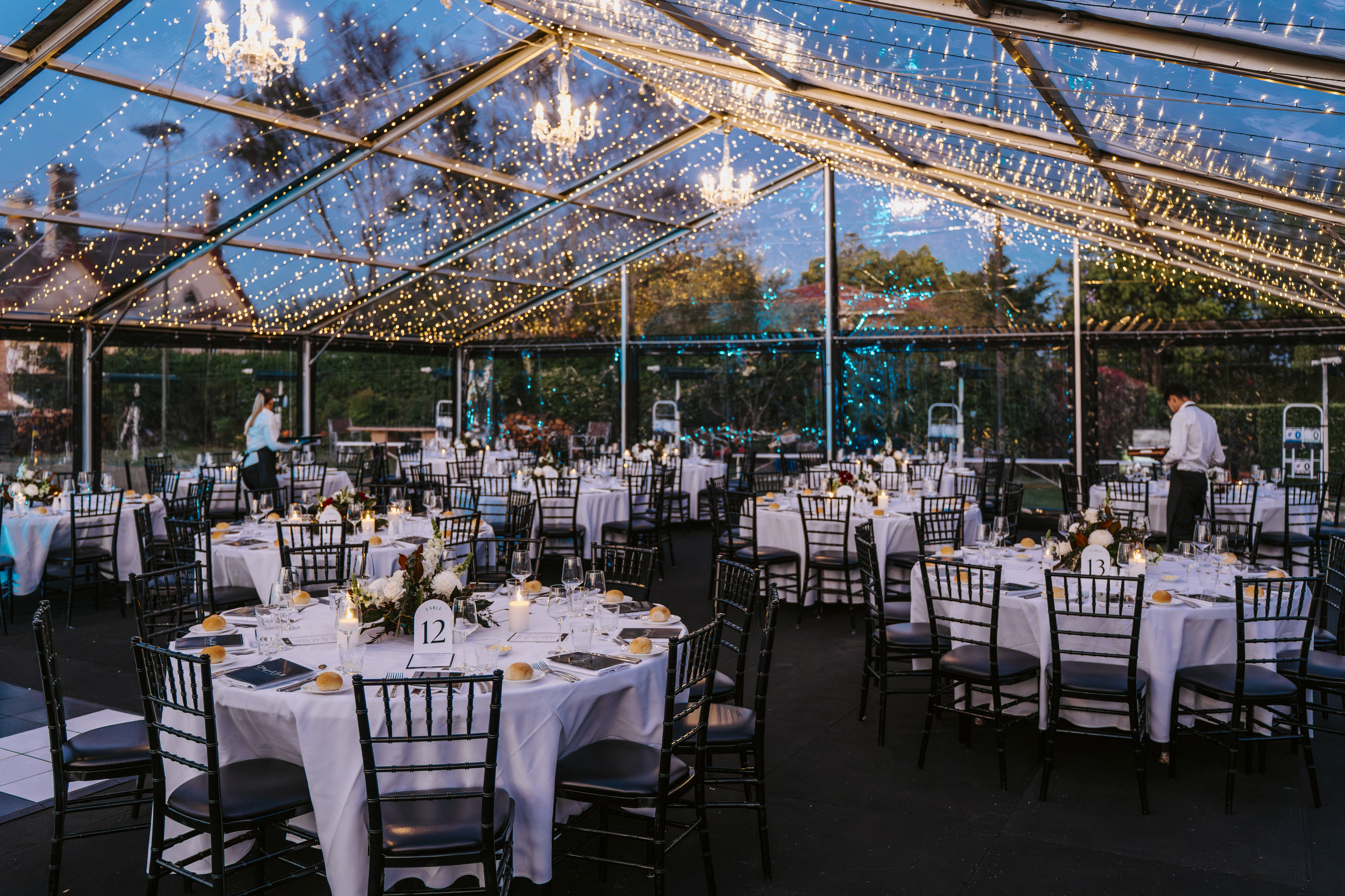 A clear roof marquee allows guests to enjoy the beauty of the Sydney sky – think sunsets, stars and twinkling fairy lights